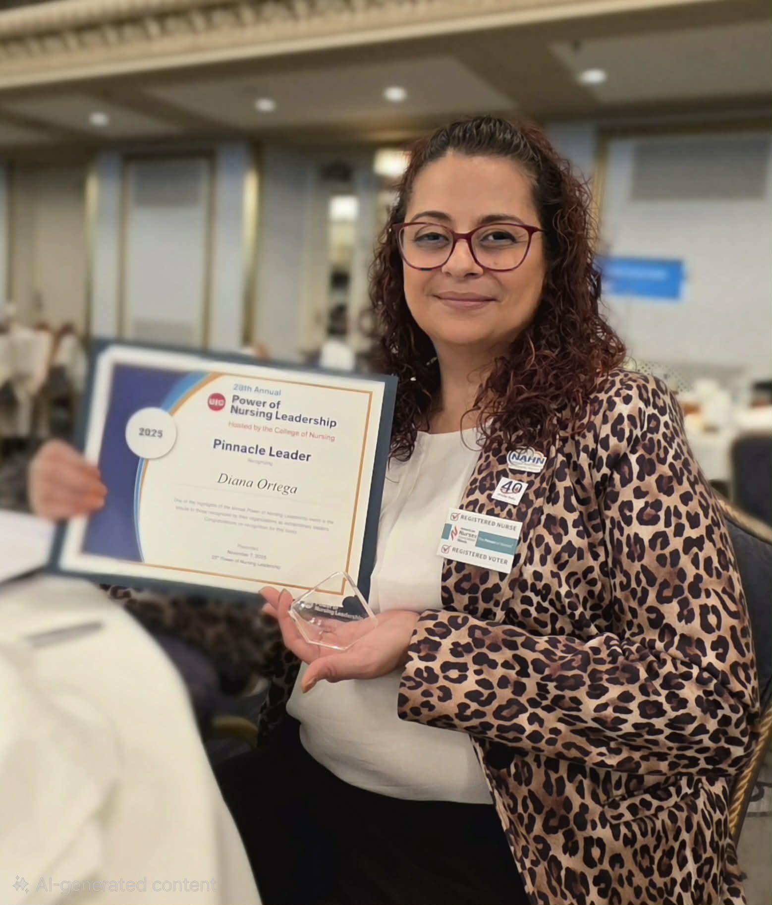Diana Ortega Congratulations to Diana Ortega, who was awarded the 2025 Pinnacle Nurse Leader Award through the Power of Nursing Leadership. She was nominated by her ANA-Illinois President and Executive Director for the work she has done in her state.